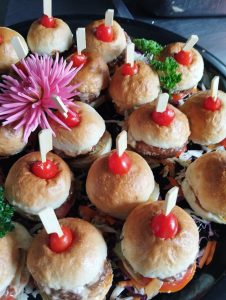 Cocktail rolls with Chicken, Beef or Vegetable patties & burger sauce