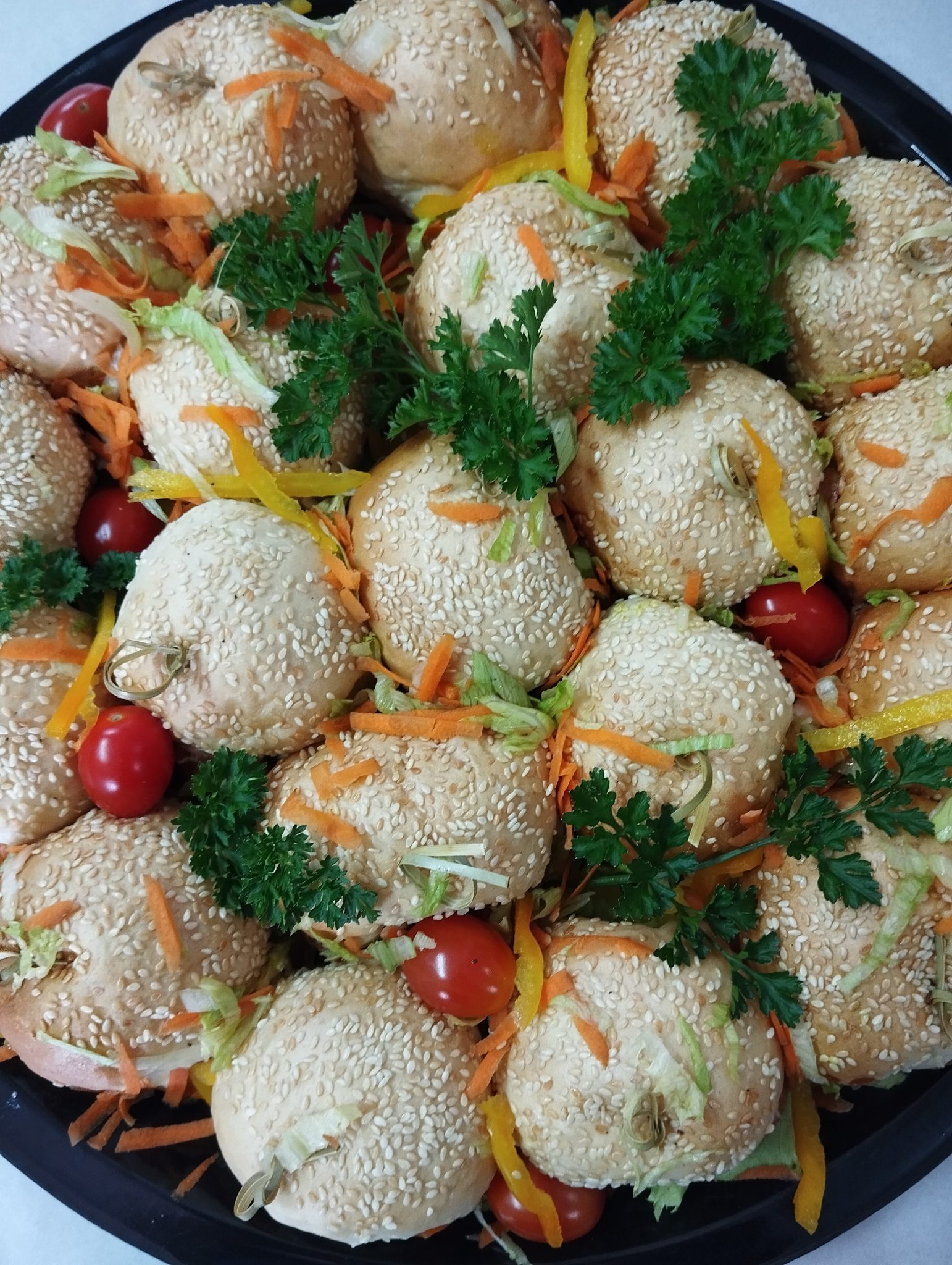 20 units Cocktail rolls with Chicken, Beef or Vegetable patties & burger sauce